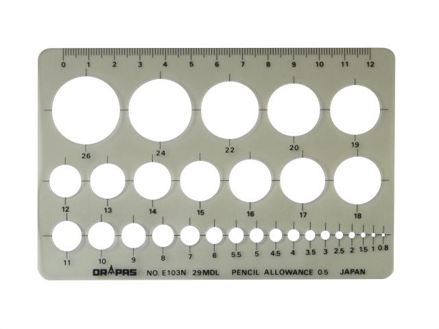 ◆商品名:ドラパス テンプレート 円定規(小) 31-103 E-103<br>製図用のテンプレート。 円定規(小)。