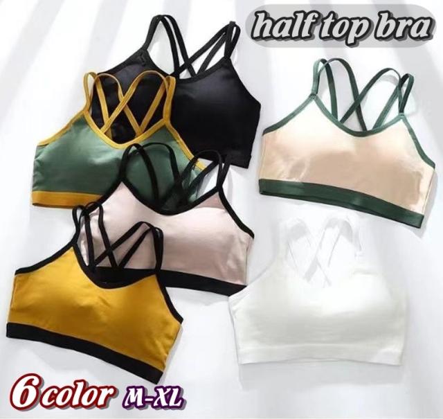 ハーフトップブラ ノンワイヤーブラ ブラジャー レディース 女性 婦人 下着 インナー バッククロス カップ付き スポーツブラ