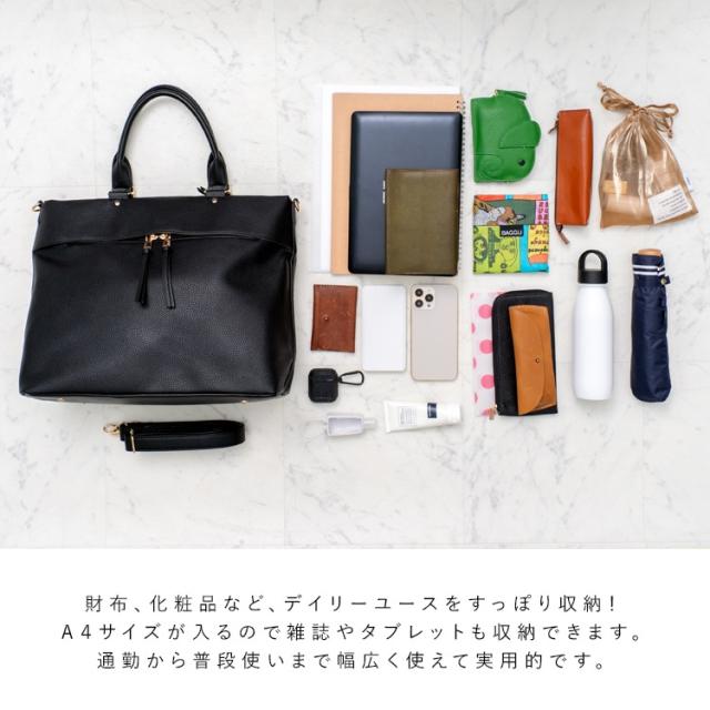 A4サイズが余裕で入る大きめサイズで、書類やノートPCも入るので