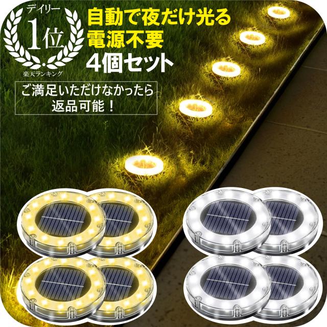 ソーラーライト 屋外 LED 4個セット ガーデンライト 防水 庭用ソーラーライト おしゃれ ガーデンソーラーライト 庭 防犯 イルミネーション 明るい センサー 花壇 植栽 駐車場 置き型 コンセント不要 埋め込み かわいい センサー 円形 丸 自動点灯 消灯