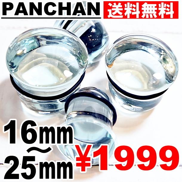 ガラス プラグ フレア 16mm 19mm 22mm 25mm ボディピアス 透明 クリア