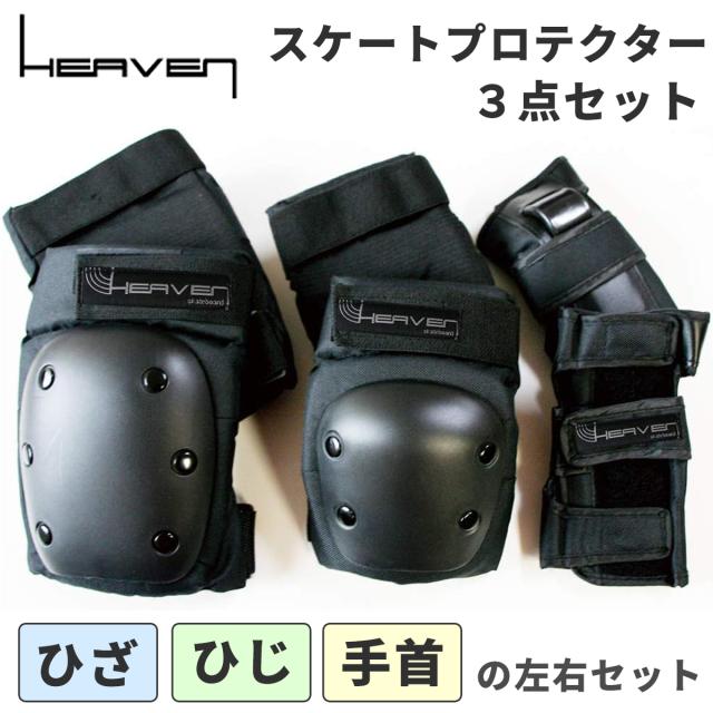 HEAVEN ヘブン プロテクター スケートプロテクター3点セット 保護 スケートボード スケボー 大人用 子供用 子ども用 リストガード エルボーパット ニーパッド ヒザ ひざ 膝 ヒジ ひじ 肘 手首 日本正規品