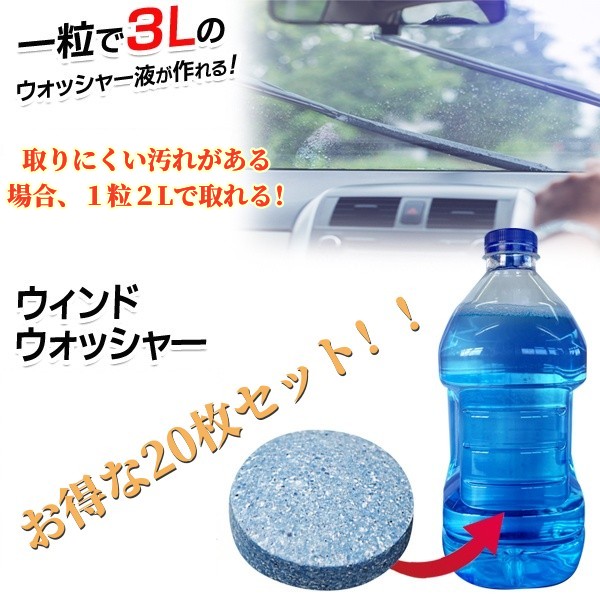 車用 ウォッシャー液 錠剤型 マジカルウインドウォッシャー 20個セット 3L×20個【 洗剤 ワイパー 自動車 ガラス掃除 カー用品 タブレット 洗浄液 ケア用品 】 MWウォッシャー