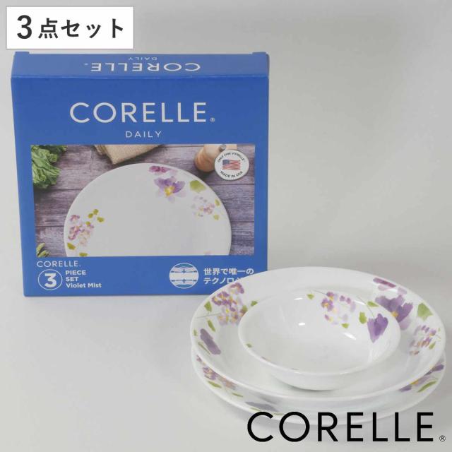 食器 3点セット CORELLE コレール バイオレットミスト 強化ガラス ( 食洗機対応 電子レンジ対応 オーブン対応 食器セット ボウル プレート 深皿 汚れ 落ちやすい 丈夫 おしゃれ 引っ越し 花柄 )