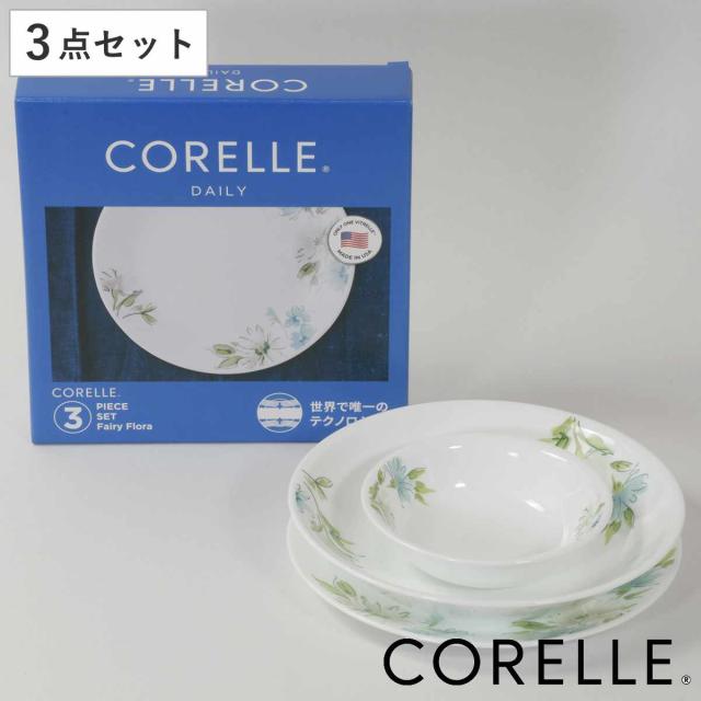 食器 3点セット CORELLE コレール フェアリーフローラ 強化ガラス ( 食洗機対応 電子レンジ対応 オーブン対応 食器セット ボウル プレート 深皿 汚れ 落ちやすい 丈夫 おしゃれ 引っ越し 花柄 )