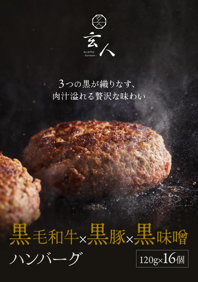 【 送料無料 】黒毛和牛 × 黒豚 × 黒味噌 ハンバーグ 16個 ハンバーグ 冷凍 小分け 高級 肉 牛 簡単調理 特製 黒味噌 国産 贈り物 ギフト 牛肉 豚肉 BBQ バーベキュー 食材