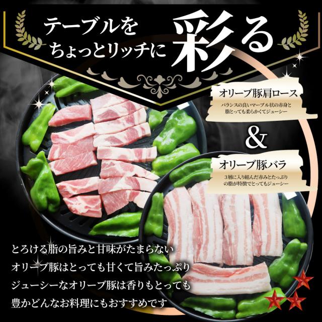 | オリーブ豚 焼肉 2種食べ比べ 1kgはこちら> |