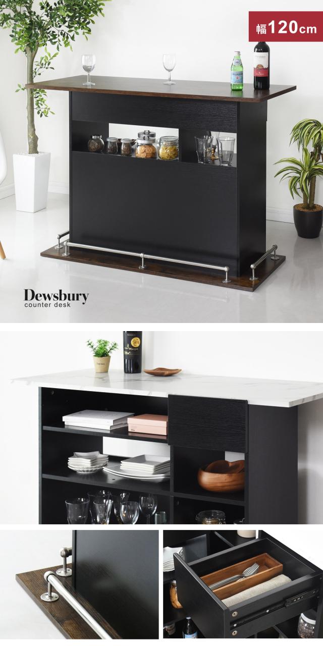 キッチンカウンター バーカウンター カウンターテーブル 収納 フットステップ 引き出し付き 幅120cm ヴィンテージ 大理石調 デューズベリー120 おすすめ おしゃれ 北欧 big_ki プレゼント tm