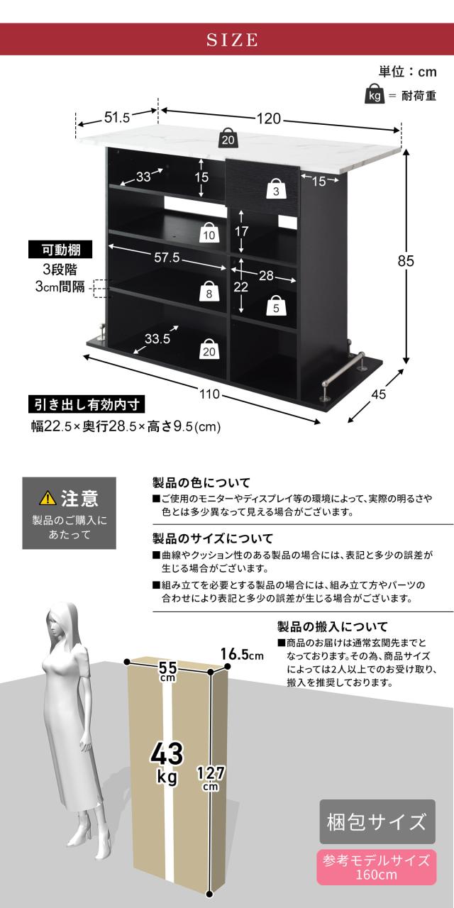 幅120×奥行50×高さ85(cm)