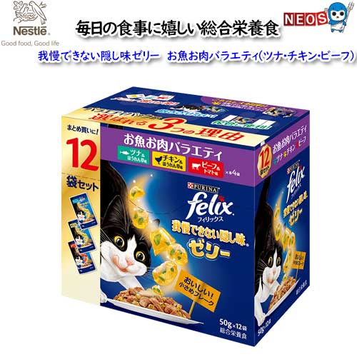 ネスレ フィリックス 我慢できない隠し味ゼリー お魚お肉バラエティ(ツナ・チキン・ビーフ) 50g×12袋入り