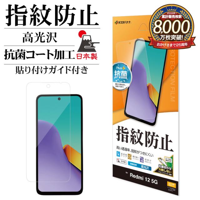 Xiaomi Redmi 12 5G フィルム 全面保護 高光沢 高透明 クリア 指紋防止 抗菌 日本製 貼り付けガイド 保護フィルム G4081R12 ラスタバナナ