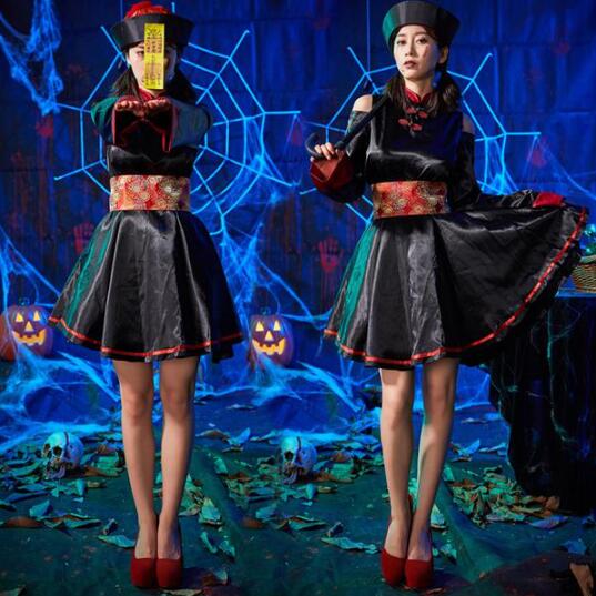キョンシー ハロウィン コスプレ 仮装 ゾンビ チャイナ チャイナ服 コスチューム キョンシーガールズ レディース ハロウィンコスプレ ハロウィン衣装 女性用 刺繍 巫女 おばけ 可愛い ワンピー 大人 Halloween おばけ 悪魔 霊幻道士 幽幻道士