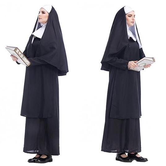 ハロウィン衣装 シスター 聖女 修道女 コスプレ衣装 修道服 修女 イエス・キリスト 牧師服 神父服役 cosplay 宣教師 牧師服コスチューム 仮装 レディース ペア ドレス マント ワンピース 3点セット 女性用 大人用 ハロウィン パーティー イベント 舞台 演出服
