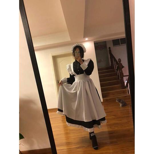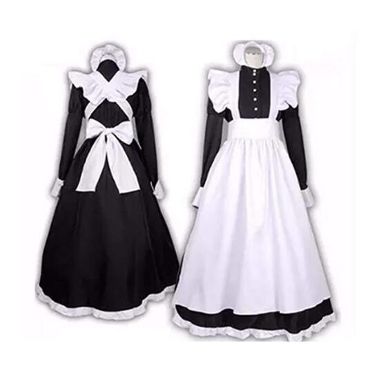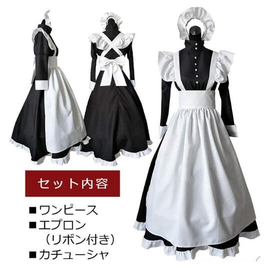 メイド服 ロング コスプレ衣装 メイド イギリス風 フリル クラシカル 黒 ブラック 3点セット ロングワンピース エプロン カチューシャ コスチューム ハロウィン レディース メンズ 可愛い ゴスロリ 萌えロリータ
