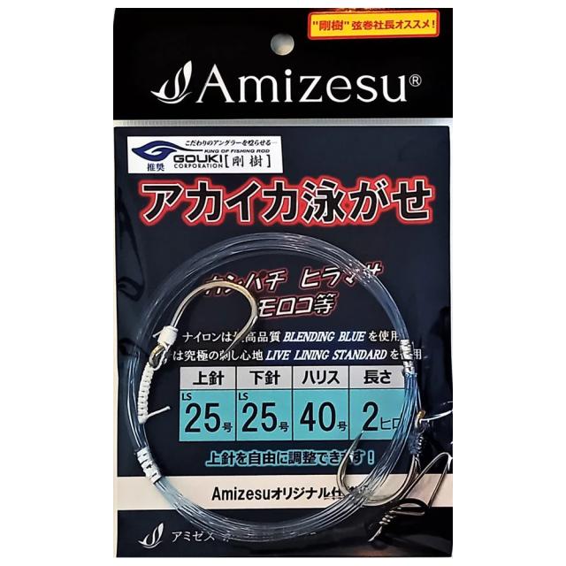 【10Cpost】Amizesu アカイカ泳がせ仕掛け 上針25・下針25/ハリス40号/長さ2ヒロ(ami-910605)