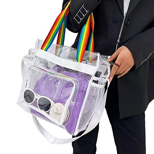 ・商品仕様:サイズ約:縦30?p×横30?p×幅15?p、重量:約350g。素材:PVC、ナイロン。透明のデザインなので、バッグの中身がひと目で確認できます。軽量で持ちやすく、レディースでもメンズでもOK!春夏秋冬、季節を問わずにハンドバッグとショルダーバッグとしてご使用いただけます。