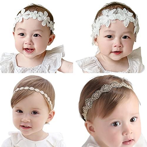 ・可愛い花デザイン:4本ヘアバンドはそれぞれ違う形のホワイト花で、違い洋服によって、適合なヘアバンドを選んであわせます。4本も非常に可愛いデザインで、赤ちゃんがこれをつけるだけでキュートな女の子に変身されます。