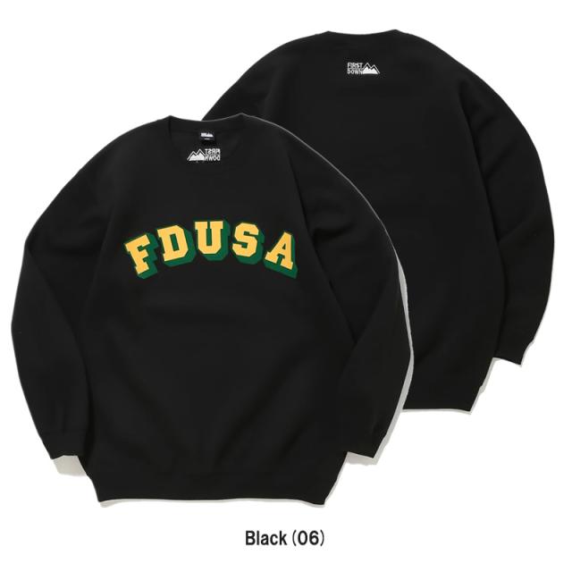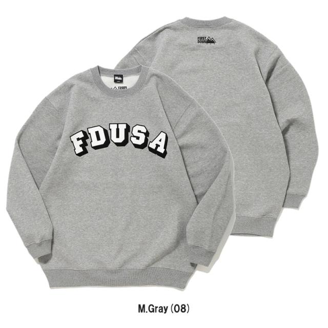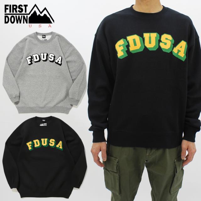 ファーストダウン First Down プリント クルー コットン スウェット 長袖トレーナー メンズ クルーネック 裏起毛 トップス f572042