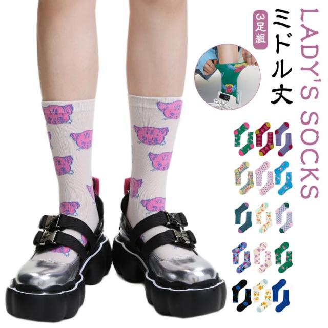 北欧 ソックス 秋色 フラワー 花柄 靴下 ミドル丈 ヴィンテージ風 靴下 3足セット 靴下 スニーカーソックス クルー丈 クルーソックス レディース おしゃれ ソックス くつした レトロ 靴下 ポップ ソックス 夏用 靴下 ソックス 秋用 女性用 レディース靴下 送料無料