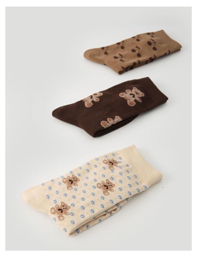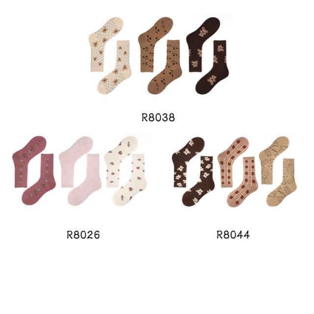 クマ くまさん 靴下 ミドル丈 秋色 チェック柄 靴下 3足セット レディース チェック 靴下 スニーカーソックス クルー丈 クルーソックス 北欧 ソックス おしゃれ ソックス くつした ヴィンテージ風 靴下 レトロ 靴下 送料無料