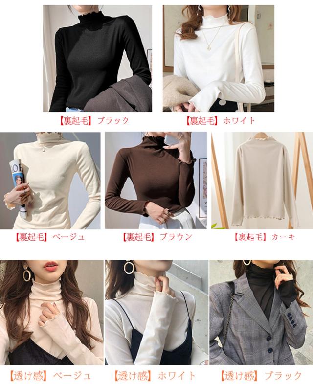 100OFFクーポン配布中*2点目20%OFF!即納 シースルー 裏起毛 カットソー レディース インナー 厚手 重ね着 トップス おしゃれ タートルネック 透け感 レディース 長袖 レイヤード コーデ 無地 柔らかい OL 通勤 オフィス フリルネック 防寒インナー ポイント消化