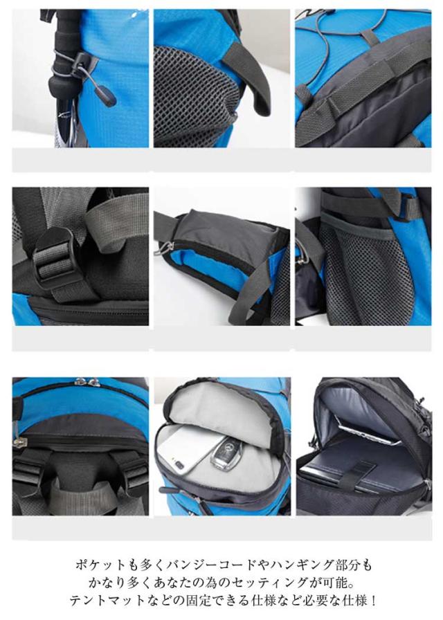 | 登山リュック 40L 旅行や日帰り登山、ハイキングに最適なザック。程よい大きさで普段使いにも◎ 容量が勿論、耐荷重性も抜群です。アウトドアを楽しめるリュックサックです。 ポケットも多くバンジーコードやハンギング部分もかなり多くあなたの為のセッティングが可能。テントマットなどの固定できる仕様など必要な仕様! 背中と肩のベルト部分には厚手のクッション材が使われているので、重くても疲れにくいですし、背中に接する部分はメッシュ構造で通気性が良くて、有効的に背中の乾燥を保持し、快適感を感じます。 大人は勿論、キッズにもおすすめです。 | |