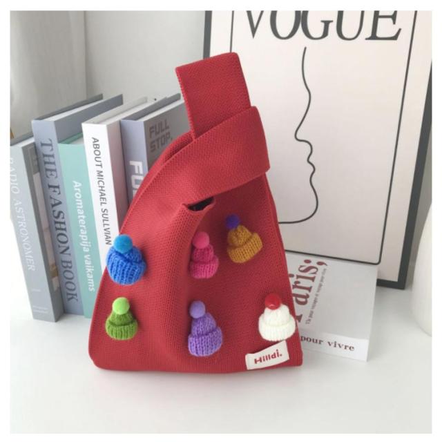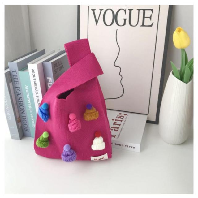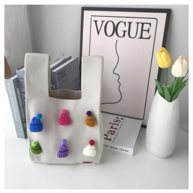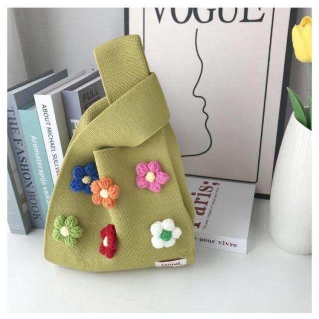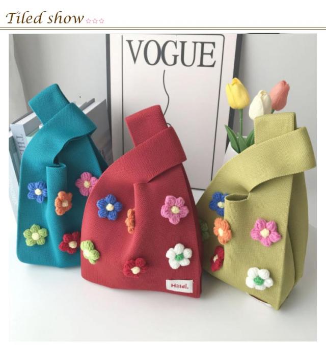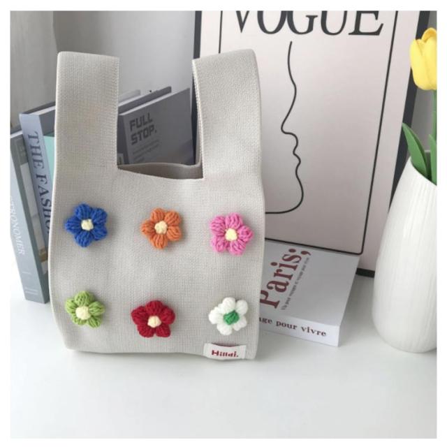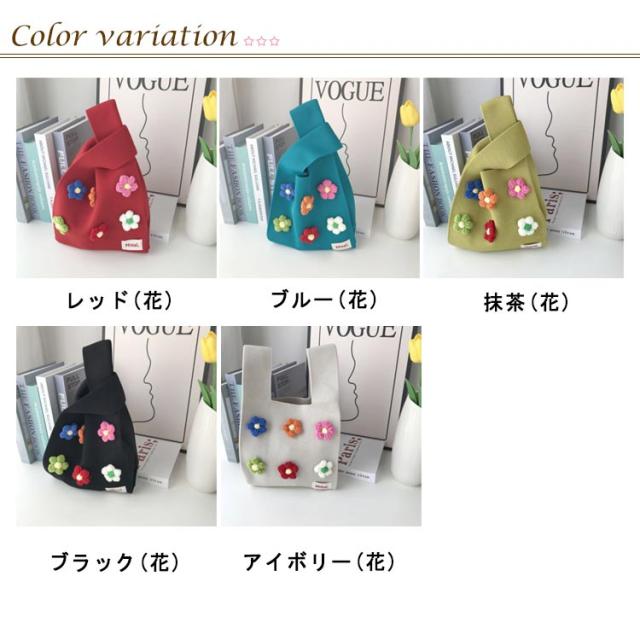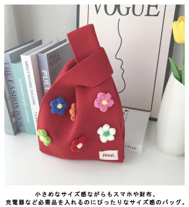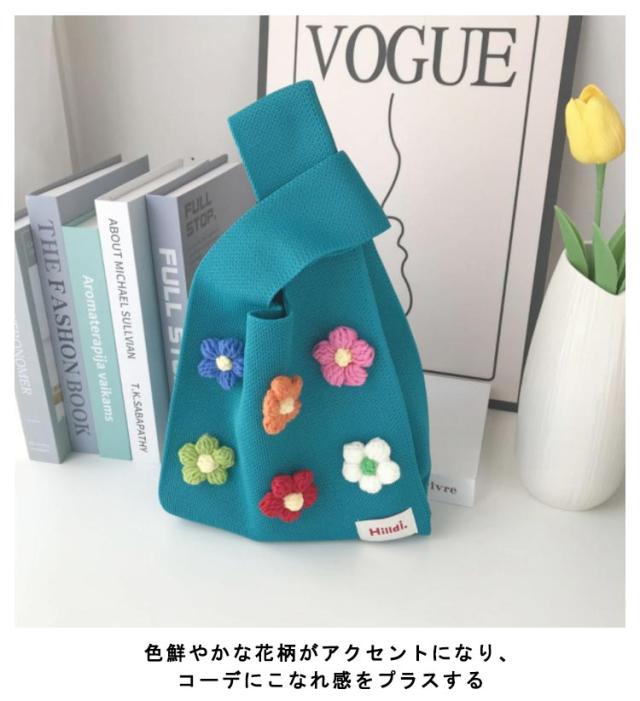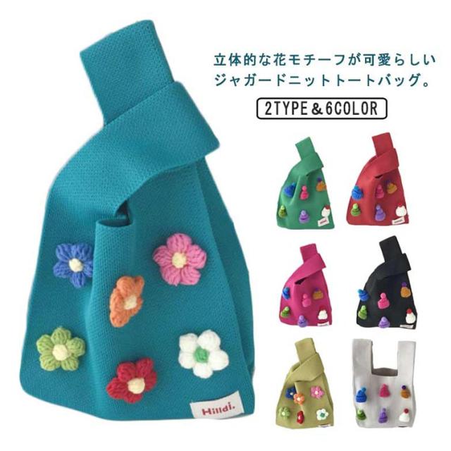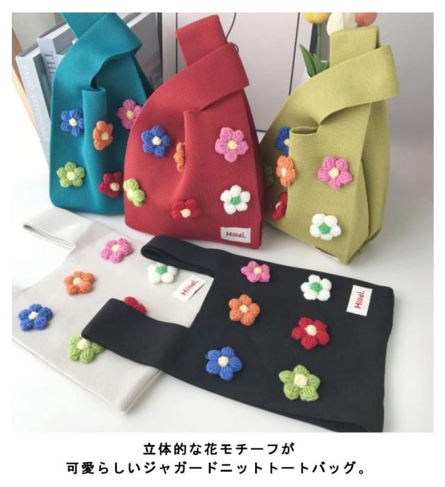 ジャガードニット トートバッグ ミニ トート レディース 秋 冬 バッグ ニットバッグ フラワー 花柄 小さめ ミニ ニットトート ミニバッグ ミニトート ニット ハンドバッグ 軽い 軽量 韓国 カジュアル かわいい おしゃれ サブバッグ 【送料無料】