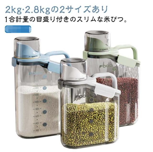 1個セット 米びつ スリム 2kg 2.8kg ライスストッカー 米櫃 米 ストッカー 冷蔵庫 米保存容器 米 保存 密閉 パッキン付き こめびつ 2キロ ライスボックス 計量カップ付 目盛り付き 小型 コンパクト 洗える 北欧 おしゃれ ホワイト クリア