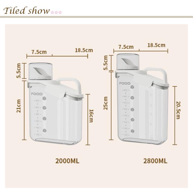 | 1合計量の目盛り付きのスリムな米びつ。【2個セット】【2kg?2.8kgの2サイズあり】 冷蔵庫で保管するのに適したスマートなサイズで、冷蔵庫のドアポケットや野菜室にも収納できます。 密閉パッキン付で、お米を密閉して湿気から守り鮮度を保ちます。 目盛りがついているので、お米の残量や取り分けの目安がわかります。 PP素材で作られており、長期間の使用への耐久性があります。 | |
