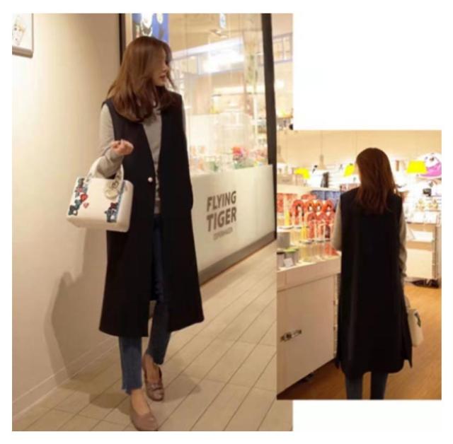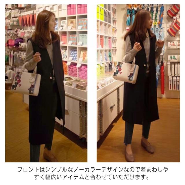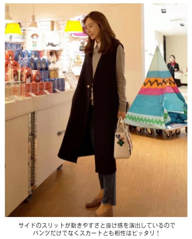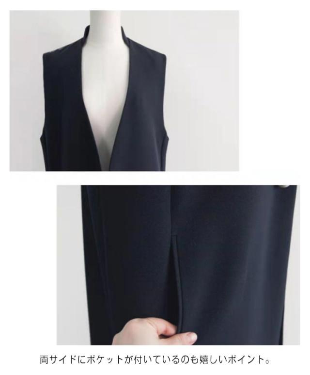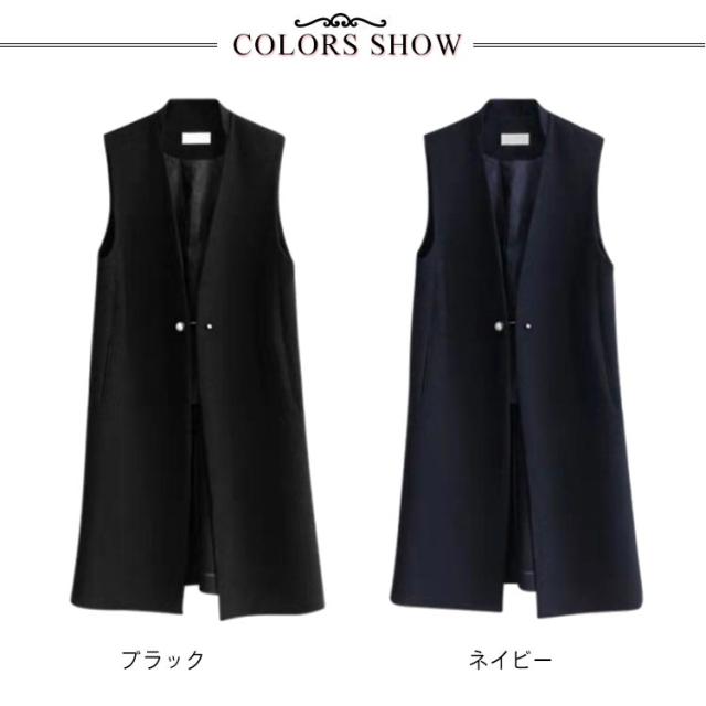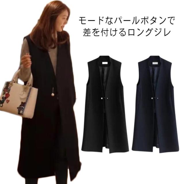 ジレ コート レディース ロング丈 スーツ ベスト パール ボタン Vネック 大きいサイズ 袖なし ノースリーブ スリット 前開き アウター フォーマル カジュアル きれいめ 上品 通勤 春 秋 オフィス