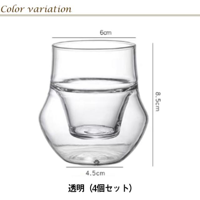 4個セット!ダブルウォールグラス 耐熱ガラス コーヒーカップ マグカップ グラス 100ML タンブラー ワイングラス ウォールグラス 二重ガラス マグ カップ おしゃれ 北欧 食器 カフェ 結露しない 保冷 保温 敬老の日 プレゼント