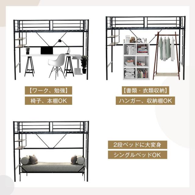 「クーポン配布中」ロフトベッド パイプベッド システムベット 收納付き 耐震ベッド シングル ラック棚付き 子供ベッド二段ベッド 子供部屋 二段ベッド スチール 子供部屋スチール 北欧風 新生活応援