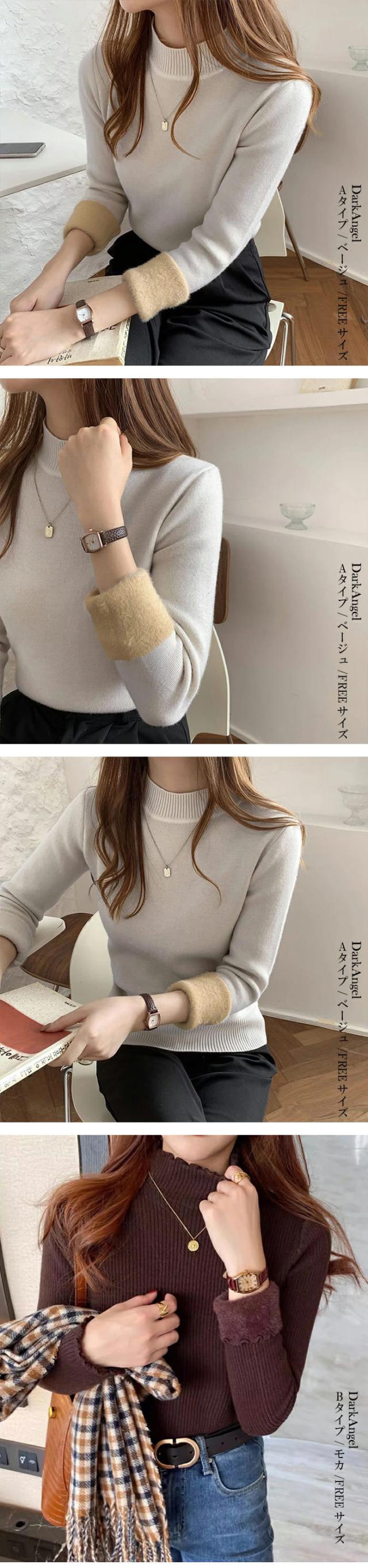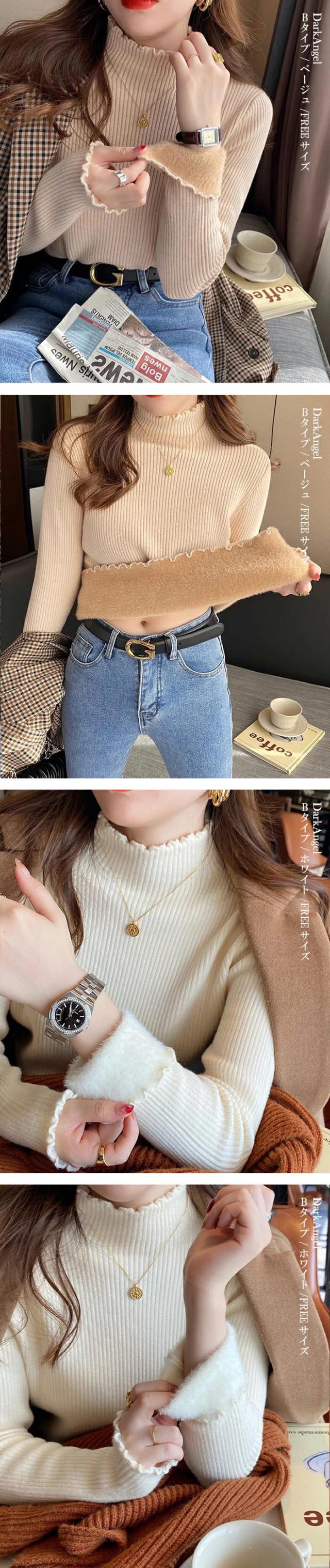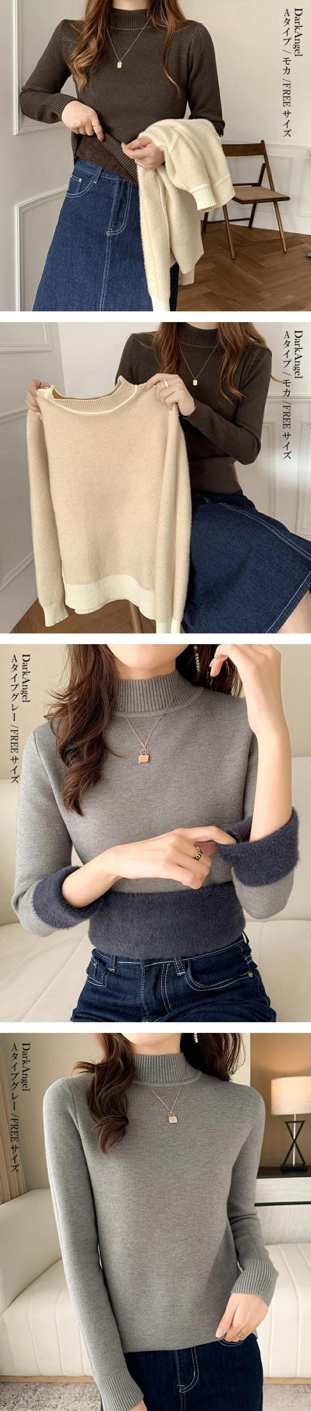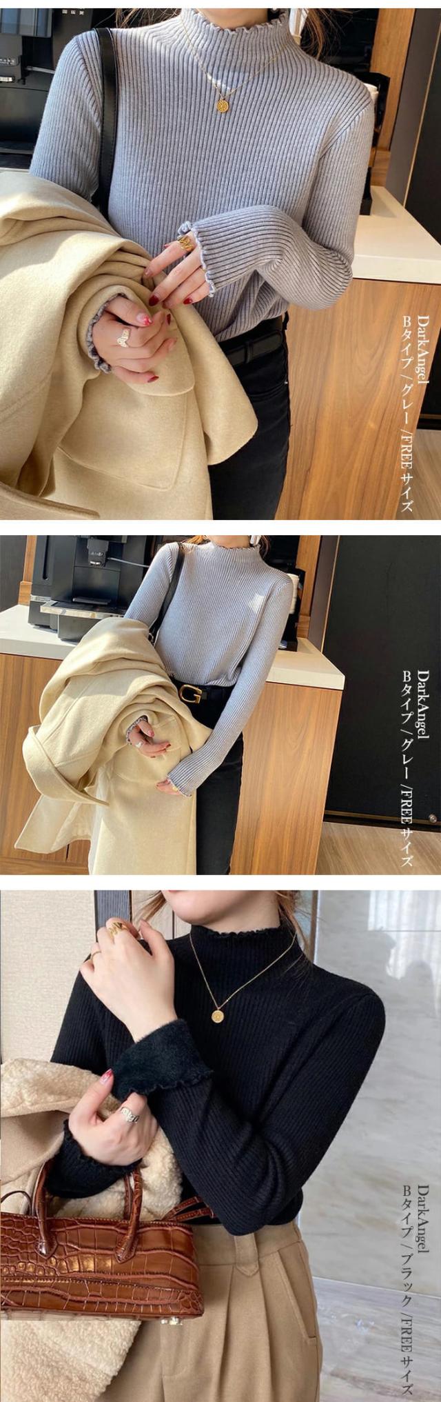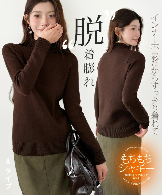 50%OFFクーポン対象!裏シャギー 元祖裏起毛 ニット トップス レディース ハイネック メロウ メロー フリル セーター モックネック 裏ボア 秋冬 長袖 オフィス カジュアル きれいめ 暖か 防寒 上品 大人 もちもち 【裏起毛モックネックニット】春新作
