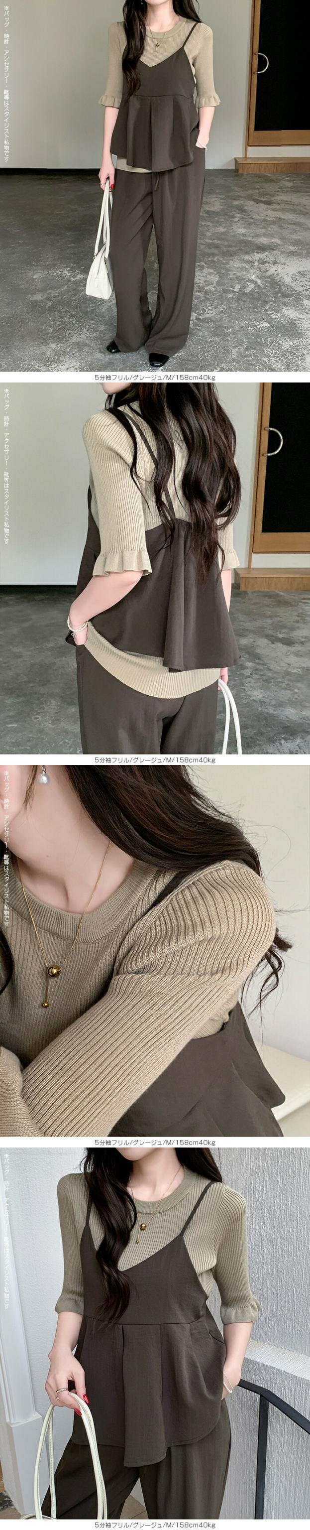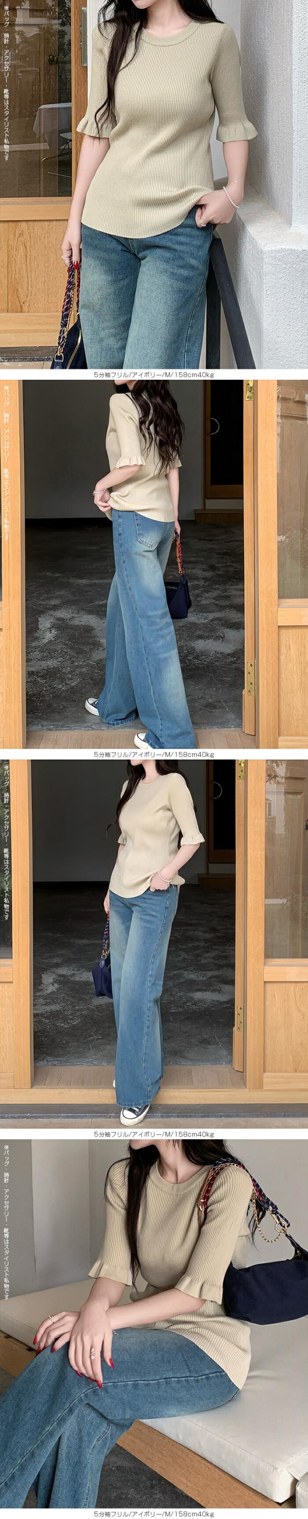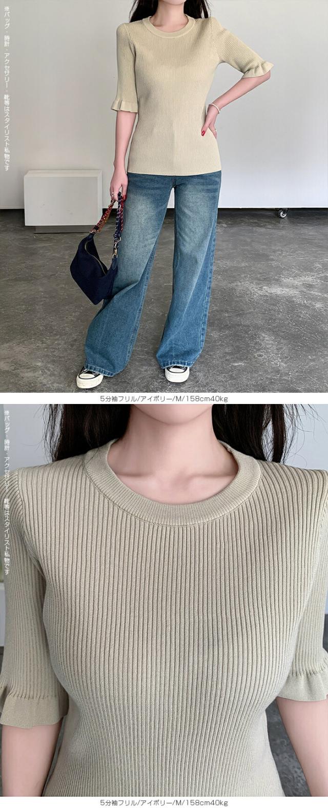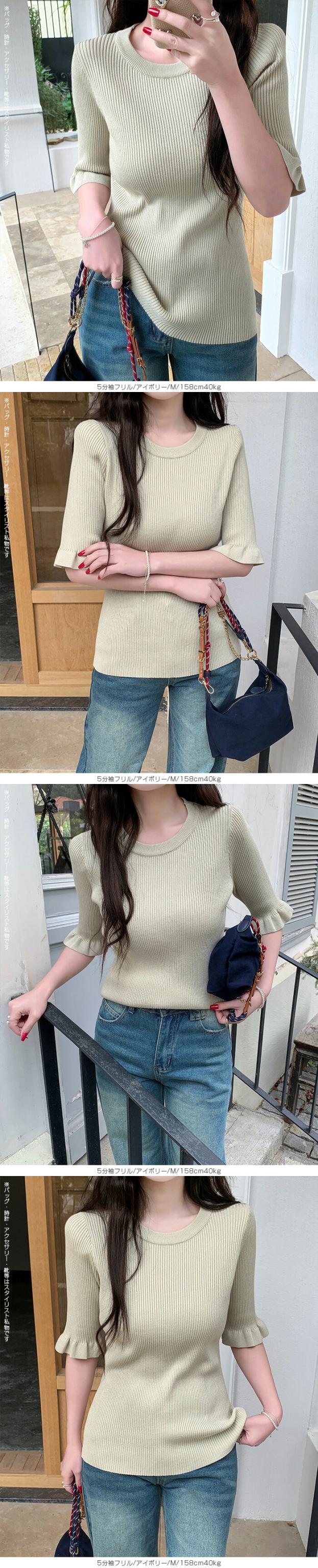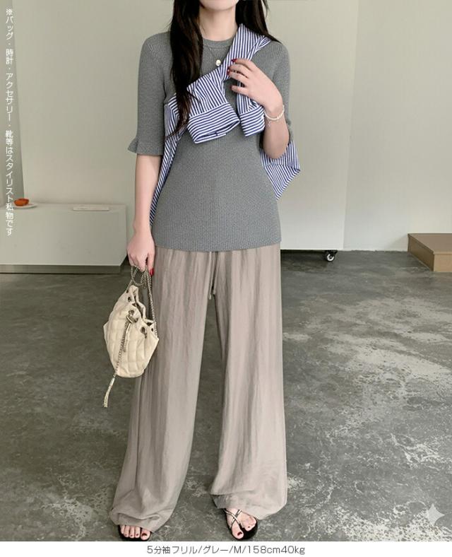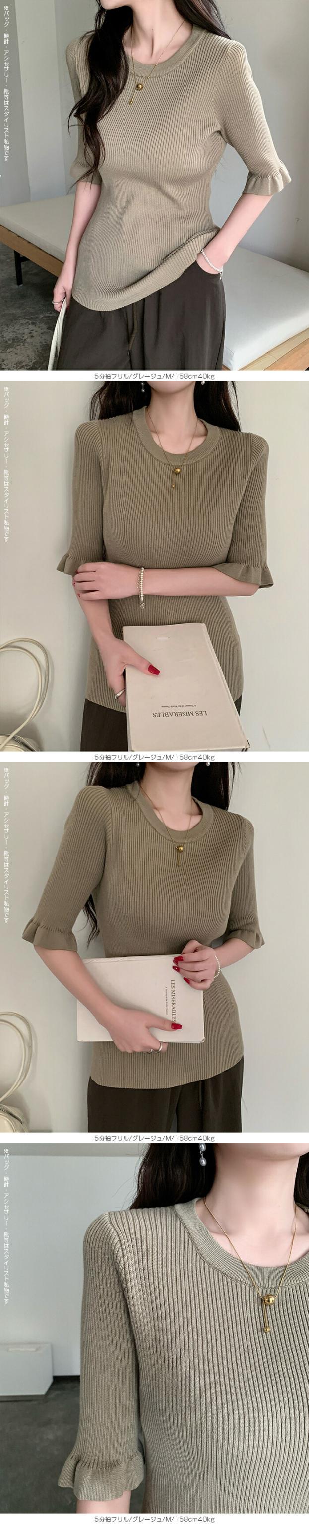 【 選べる2生地 きれいめリブニット 】 ほどよいフィット感で女性らしいラインをきれいに引き立てる、リブニット。 縦ラインを強調するリブ編みがすっきりとした印象を演出し、 幅広いシーンで着用頂ける、デイリーアイテムです。 [5分袖フリル] シンプルながらも袖口のフリルがさりげない華やかさをプラスします。 さらりとした軽やかな素材感で、春夏シーズンに心地よく着用可能。 一枚着としてはもちろん、キャミワンピやビスチェとのレイヤードにも活躍する着回し力の高いトップスです。 [長袖裏シャギー] 高い保温性の裏シャギーと、リブニットをドッキングさせた優秀デザイン。 1枚でヒートインナーの役目も果たしてくれるから、冬の着膨れも心配なし! 3タイプデザイン展開でお気に入りのデザインからお選びいただけます。 ベーシックカラー展開で、通勤・お出かけ・デイリーコーデまで幅広く対応します。 《商品ポイント》 ・身体にフィットしすぎない程よい伸縮性 ・一枚でもレイヤードでも使える万能トップス [5分袖フリル] ・二の腕をやさしくカバーする5分袖丈 ・袖口フリルで程よいフェミニンさをプラス ・春夏に嬉しい軽やかなサマーニット素材 [長袖裏シャギー] 裏シャギー仕様で1枚でしっかり保温。 着膨れしにくく、寒さの気になる初春にも活躍してくれる1着。 ・縦ラインを強調する細リブ編みでスタイルアップ見え 《デザイン・シルエット》 [5分袖フリル] ・ネック:ベーシックなクルーネックで上品な印象 ・編地:細リブで縦ラインを強調 ・袖:5分袖+控えめフリルで女性らしいアクセント ・シルエット:ウエストラインを自然に沿うすっきりフォルム ・丈感:ボトムイン・アウトどちらもバランス良く決まる着丈 [長袖裏シャギー] Aタイプ/リブ ・シンプルなモックネックデザイン。 ・ネック/袖リブでスッキリとした印象。 Bタイプ/リブメロウ ・ハイネックデザインでネックと袖がメロウフリル。 ・シンプルの中に可愛さも光るデザイン。 Cタイプ/リブ起毛 ・表地に起毛感のあるデザインで柔らかい印象に。 身体のラインを拾いすぎない設計で、きれいめにもカジュアルにも対応できる万能バランスです。 《コーディネート提案》 ■デニム合わせで大人カジュアル 細身デニムやストレートパンツと合わせて、シンプルながら上品なデイリーコーデに。 ■ワイドパンツで抜け感スタイル 落ち感のあるワイドパンツと合わせれば、縦ラインが強調されバランス良く仕上がります。 ■キャミワンピ・ビスチェとレイヤード トレンドのレイヤードスタイルにも好相性。袖フリルが程よいアクセントになります。 ■通勤コーデにも テーパードパンツやきれいめスカートと合わせて、オフィスカジュアルにも対応。 《サイズ・カラーバリエーション》 サイズ:FREE カラー:5分袖フリル…ブラック / アイボリー / グレージュ / グレー 長袖裏シャギーAタイプ/リブ…モカ / ホワイト / ブラック 長袖裏シャギーBタイプ/リブメロウ…モカ / ホワイト / ブラック / ベージュ 長袖裏シャギーCタイプ/リブ起毛…モカ / ホワイト / ブラック / ベージュ 《素材・機能性》 ・素材:5分袖:ポリエステル100% 長袖裏シャギー:ナイロン70%、再生繊維:18.9%、ポリエステル10.5%、ポリウレタン0.6% ・透け感:5分袖…ホワイト・淡い色のみ透け感あり 長袖裏シャギー…なし ・伸縮性:あり ・厚み:5分袖…薄手 長袖裏シャギー…普通 |