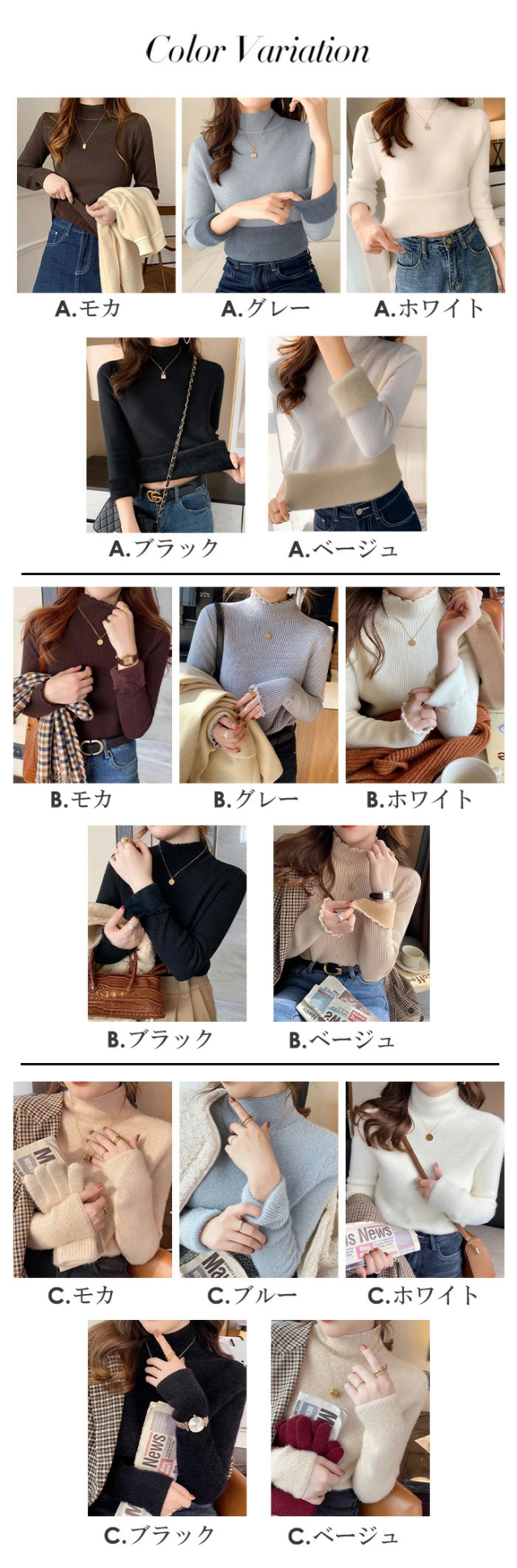 定番カラーから、重くなりがちな冬コーデを明るくするビタミンカラーまで全6色揃えました。