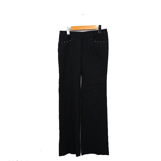 【中古】ピエスモンテ スラックス パンツ センタープレス ウール ビジュー ストライプ 38 ブラック /KT9 レディース