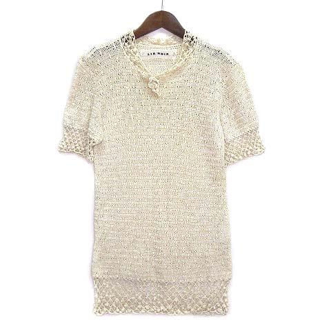 【中古】リスノアール LIS NOIR さえら シルク 100% かぎ編み ニット 半袖 セーター ライトベージュ レディース