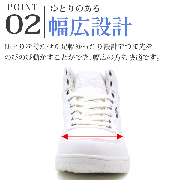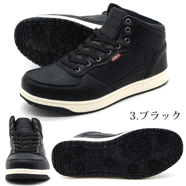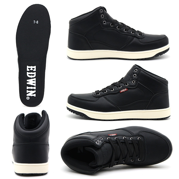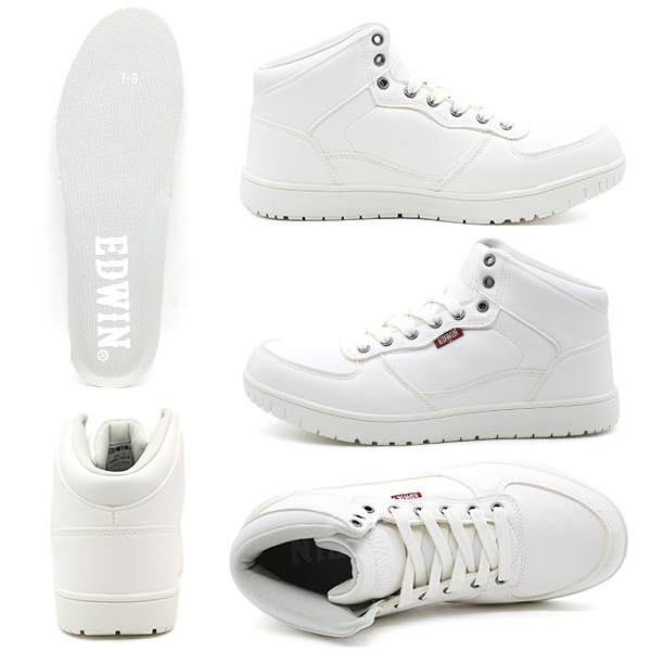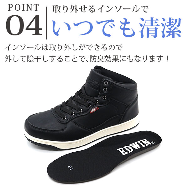 エドウィン スニーカー レディース 靴 ハイカット 黒 白 ホワイト ブラック 防水 幅広 3E 仕事 ワイズ 雨 防滑 クッション 取り外せるインソール ブーツ 学校 冬 雪 通勤 通学 可愛い ホワイトソール 人気 シンプル おしゃれ 冬新作 EDWIN EDW-7674