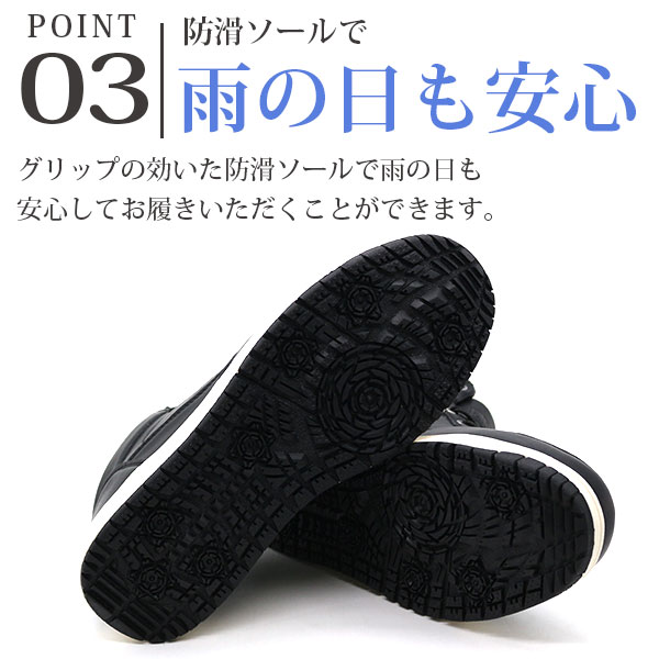 グリップ性の強い防滑ソールで雨の日も滑りにくく安心です。