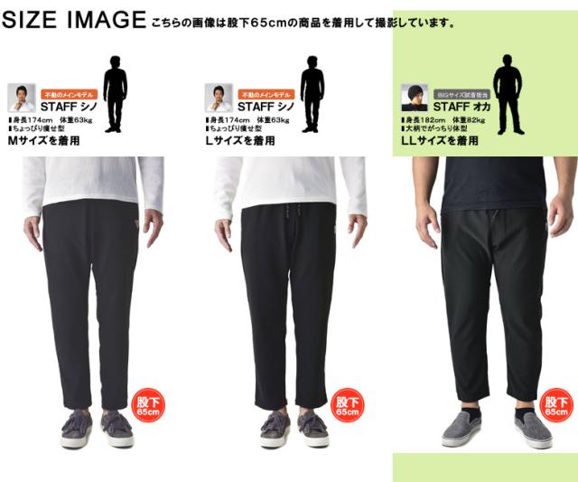 股下65cmと70cmの2タイプがあり、裾上げ済み。