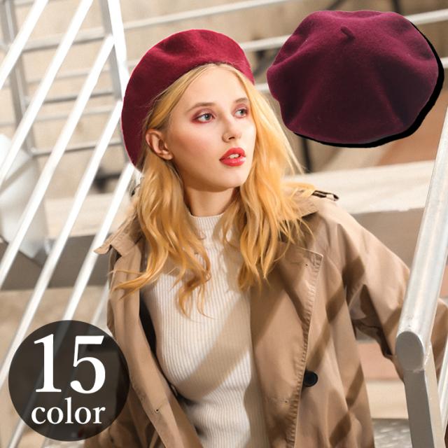 ベレー帽 ベレーキャップ レディース 女性 帽子 ぼうし ウール風 もこもこ シンプル 単色 無地 カジュアル かわいい おしゃ