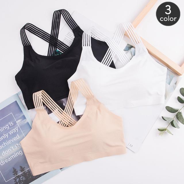 透け感のあるストラップデザインがおしゃれなスポーツブラ。