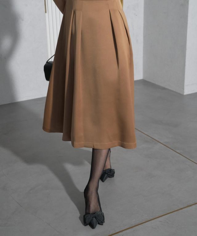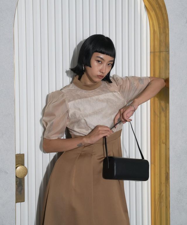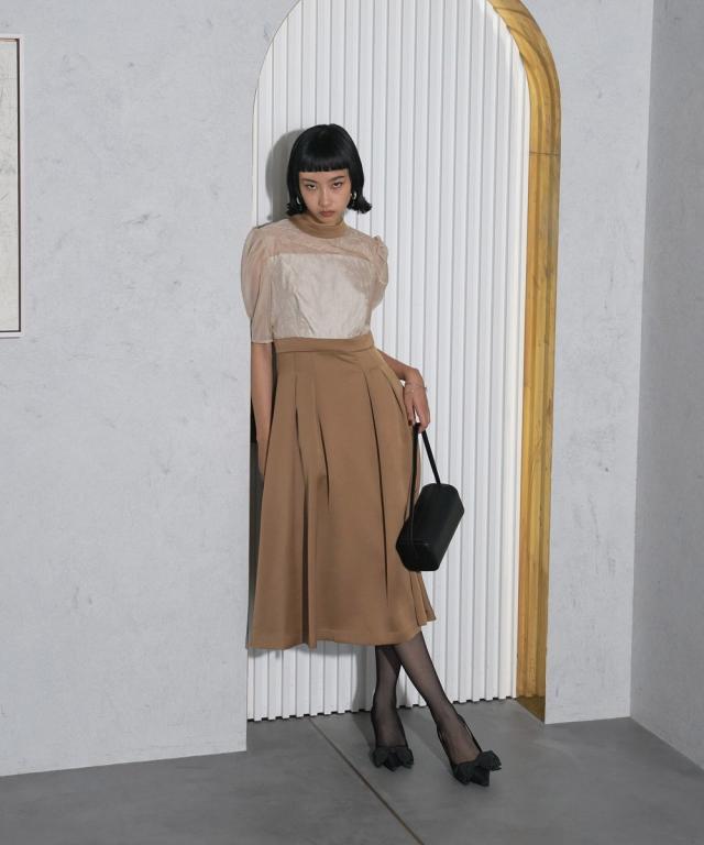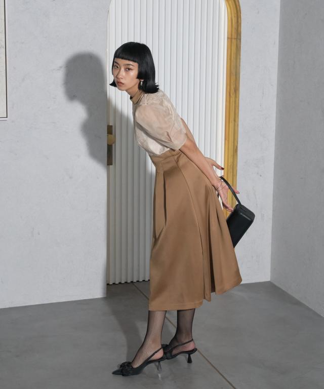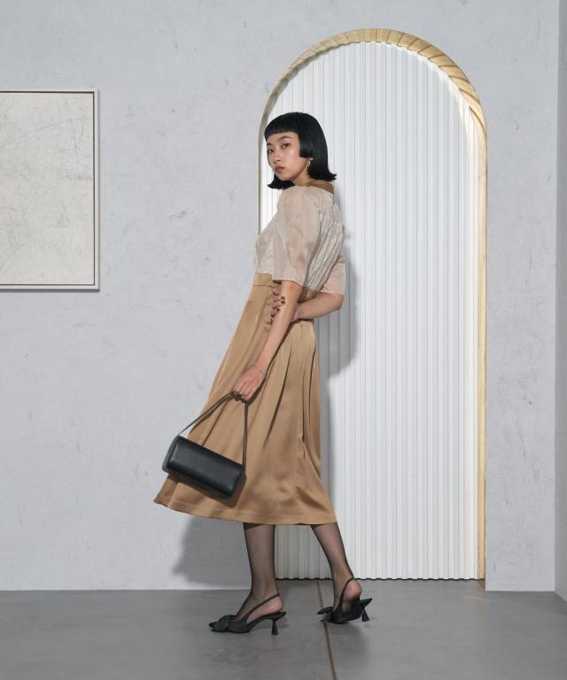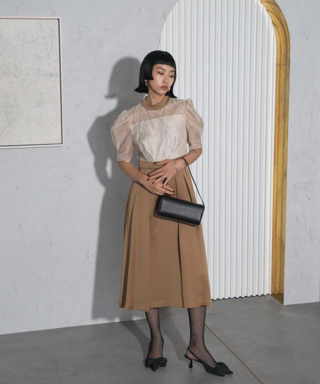 ふわりとしたスカートにはサテンを切り替え使いした、