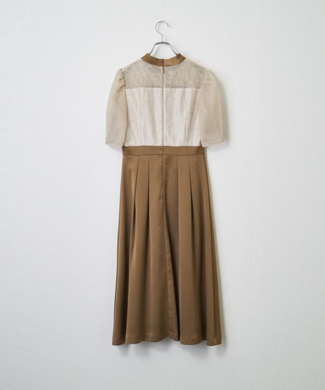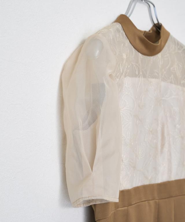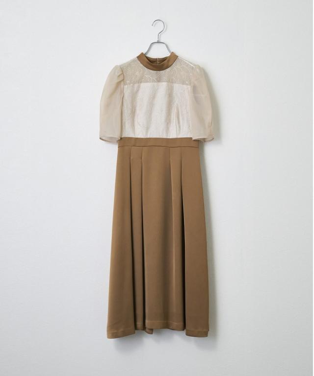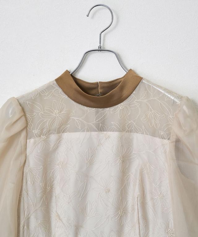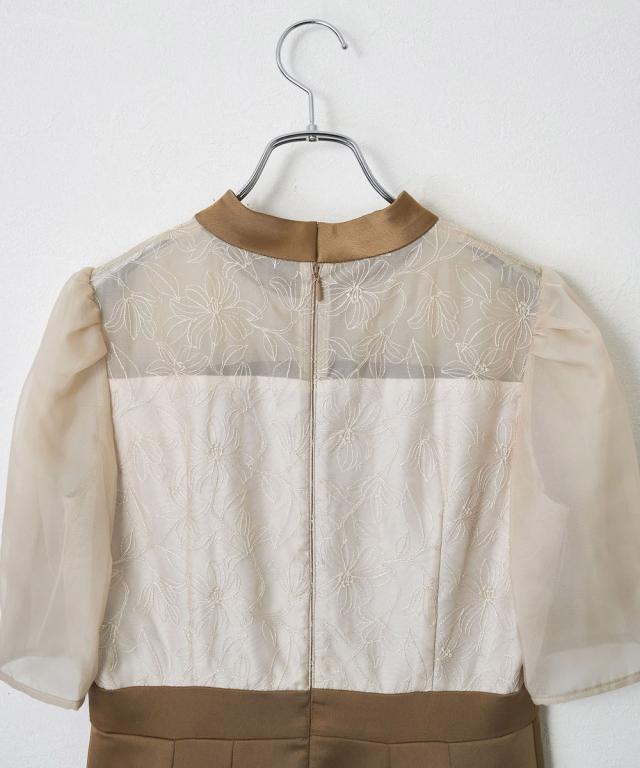 国内産のオーガンジー刺繍が華やかなスタンドカラーワンピース