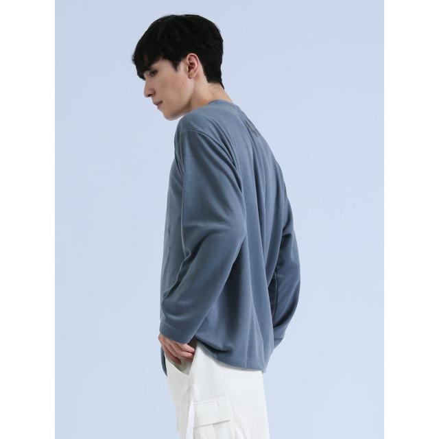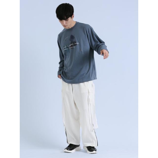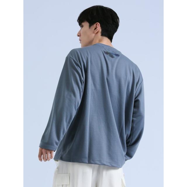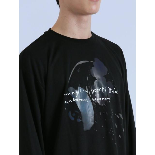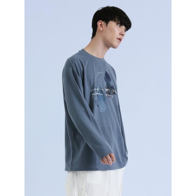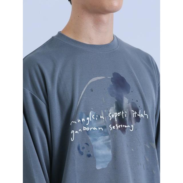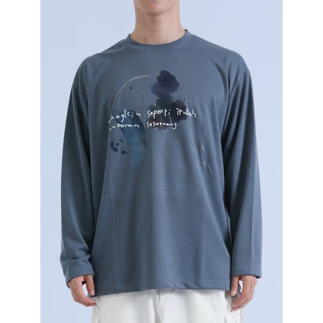 着映え度抜群、コーディネートの主役にぴったりなクルーネックの長袖Tシャツです。水彩画のようなタッチのプリントで、存在感のある一枚に仕上げています。