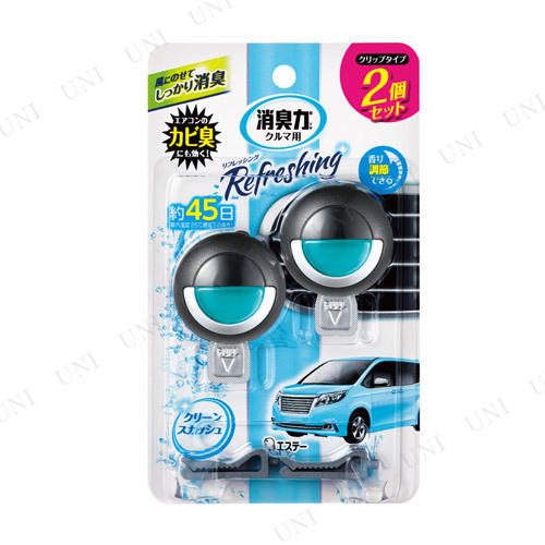エステー クルマの消臭力 クリップタイプ クリーンスカッシュ 2個セット 消臭剤 カー バイク用品 手入れ 洗車 ケミカル ペアリング消臭効果 香り調節可能