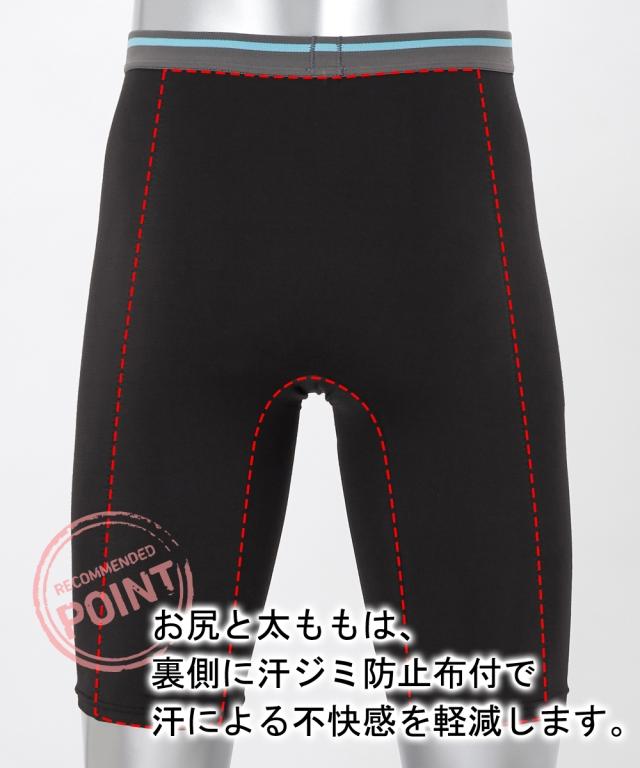 滝汗さん お尻&後ろ太もも汗ジミ防止 ストレッチ前閉じロングボクサーパンツ(吸汗速乾・抗菌防臭・接触冷感)