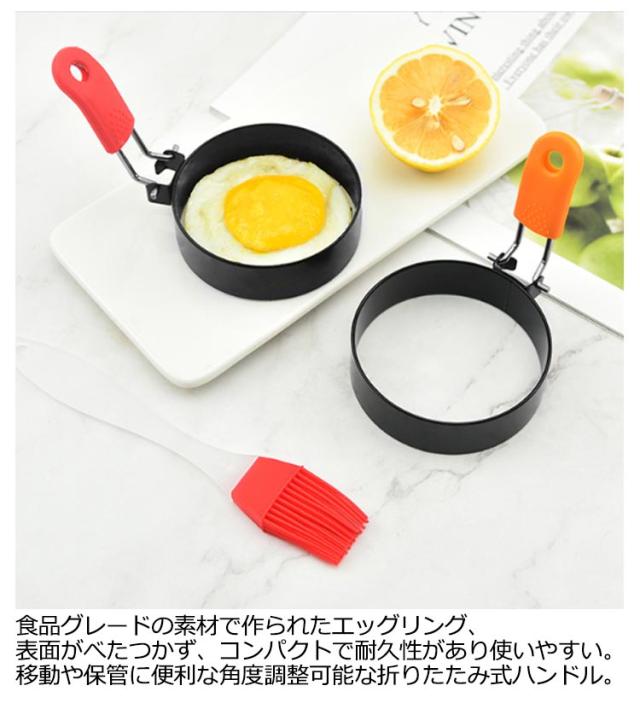 目玉焼き 目玉焼きの金型 4個セット オイルブラシ付き 目玉焼きリング 目玉焼き 型 焦げ付き防止 卵フライヤー ハンドル付き 目玉焼きの金型 エッグリング ステンレス製 お菓子作り 手作り DIY お手入れ簡単 愛の朝食を楽しみ簡単使い 収納便利 可愛い