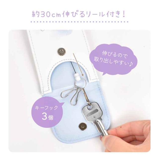 外から鍵が見えず、落とす心配がないので安心です。キーリングは最長約30cmまで伸び縮みできます!お子様でもサッと取り出せて鍵の開閉が簡単!さらに、暗いところで光る反射タグが付いているので、車などから認識されやすく夜道も安心です。入学祝いやギフト、プレゼントにおすすめです◎