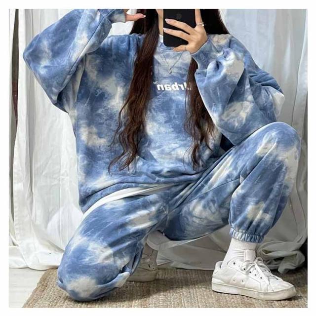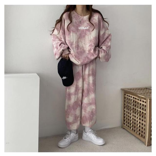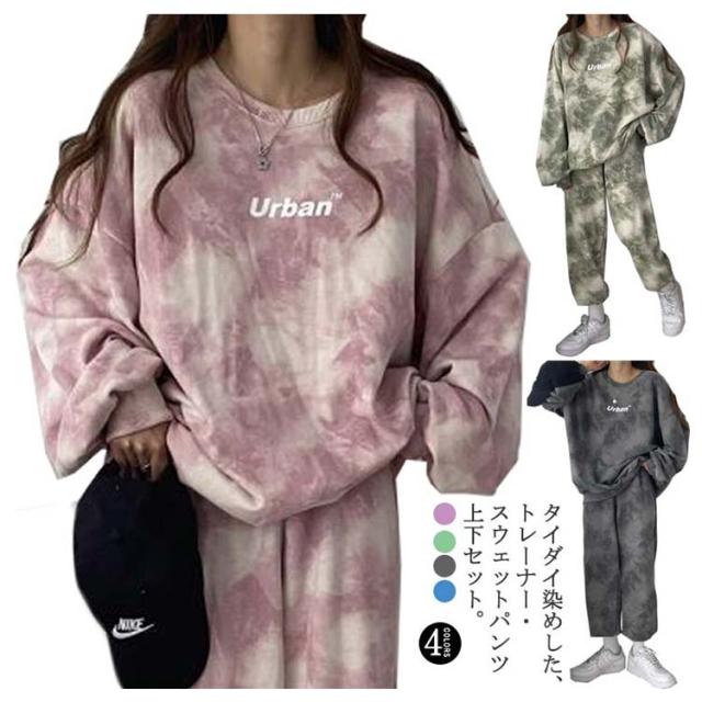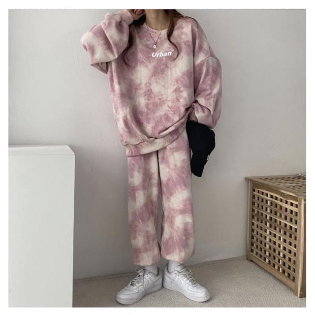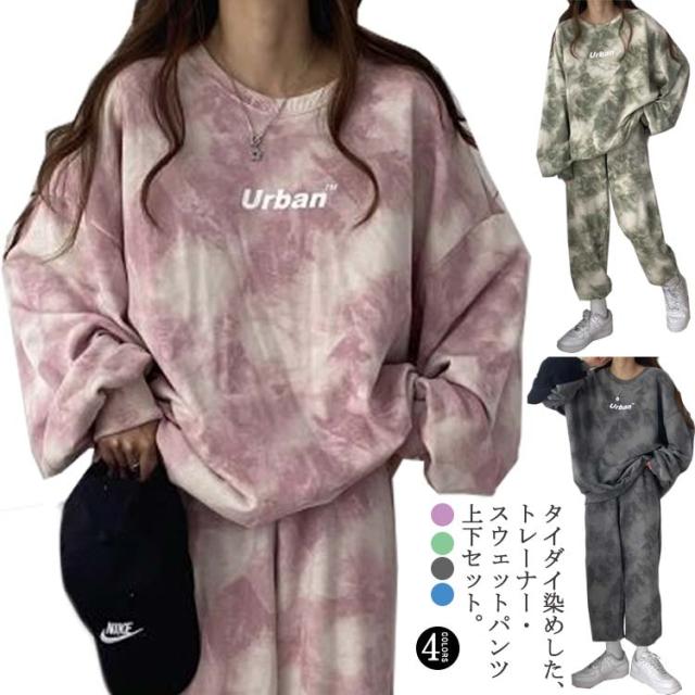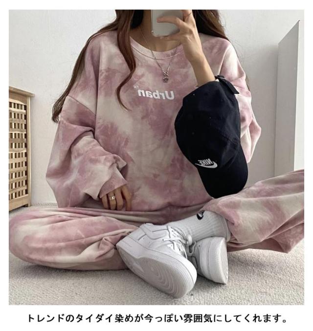 ルームウェア 上下セット 韓国 レディース セットアップ セット スウェットパンツ スウェット パジャマ 長袖 パンツ ボトムス タイダイ染め 秋 冬 春 大きいサイズ 大人可愛い ジャージ ルームウェア 部屋着 ナイトウェア